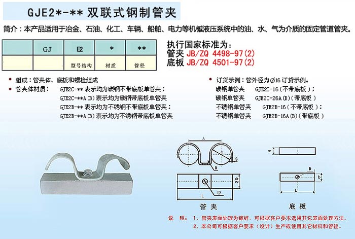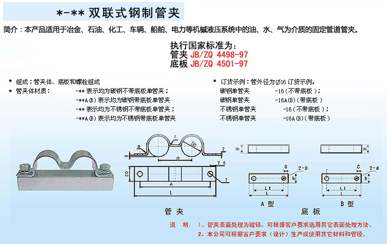 產品特點:雙管夾結構簡單,安裝簡便快捷,是管道施工的優(yōu)良產品。