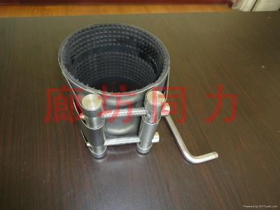 同力公司生產(chǎn)的管道搶修管卡包括兩個(gè)弧形框、弧形框連接端塊、弧形壓緊塊、密封橡膠墊、弧框橡膠墊、彈性萬(wàn)向支撐組件、兩個(gè)柔性索具、光孔連接塊組件、螺孔連接塊組件和連接螺栓。搶修管卡適用于中高壓管道的大面積泄漏裂紋或穿孔的快速封堵,能夠適應(yīng)較大的管道偏差和變形、堵漏成功率高重量輕、安裝調(diào)節(jié)簡(jiǎn)便、便于潛水員水下施工。